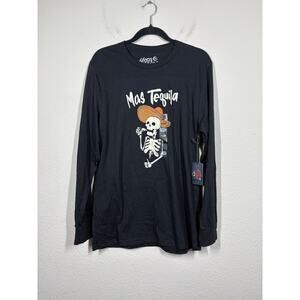 Moon Shine Spirit Mens Medium Festival Skull Print Shirt Black Mas Tequila