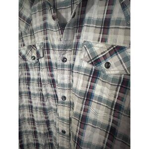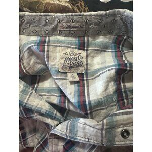 Moon Shine Spirit blue and red plaid snap front western shirt size L