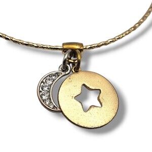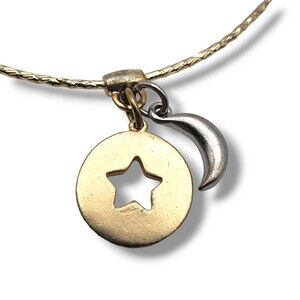Moon Star Celestial Charm Thin Gold Tone Bangle Bracelet