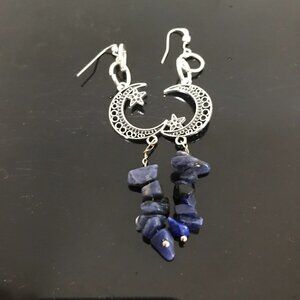 Moon Star Celestial Gemstone Earrings Silver Genuine Sodalite Drop Dangle