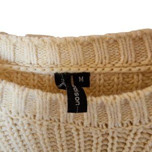 Moon and Madison Chunky Knit Polka Dot Balloon Sleeved Ivory Sweater M Medium