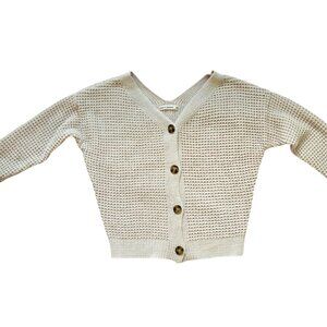 A beautiful knit cardigan sweater by Moon & Madison. An adorable cropped cardigan with an oversized and relaxed fit style. Great sweater for the cottage core style and peasant girl style.