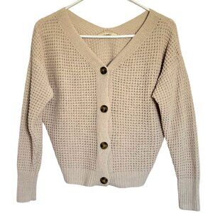 Moon and Madison Women's XS Cropped Cardigan Sweater Tan Knit Cottagecore