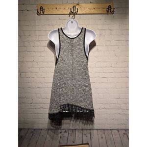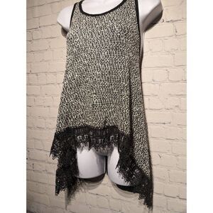 Style:. Oversized racer back tank top with ornate lace trim. Labeled as a small but can fit up to an extra large due to its oversized style.