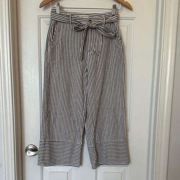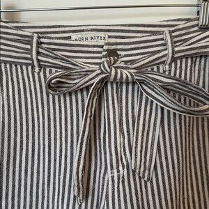 Moon river brown white striped wide leg crop belted pant small linen and viscose