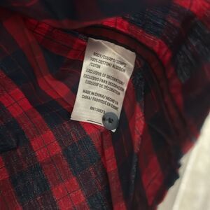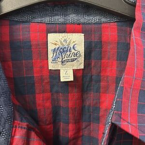 Moon shine spirit button up shirt, long sleeves, red, blue size large