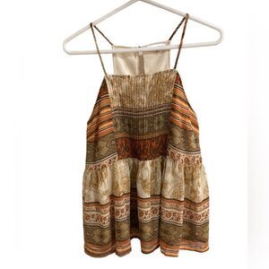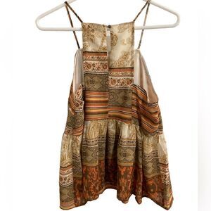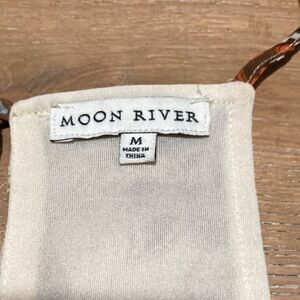 Moon River lined blouse with skinny straps pleats down the front end button in the back. Great condition no flaws found see measurements in the pictures.