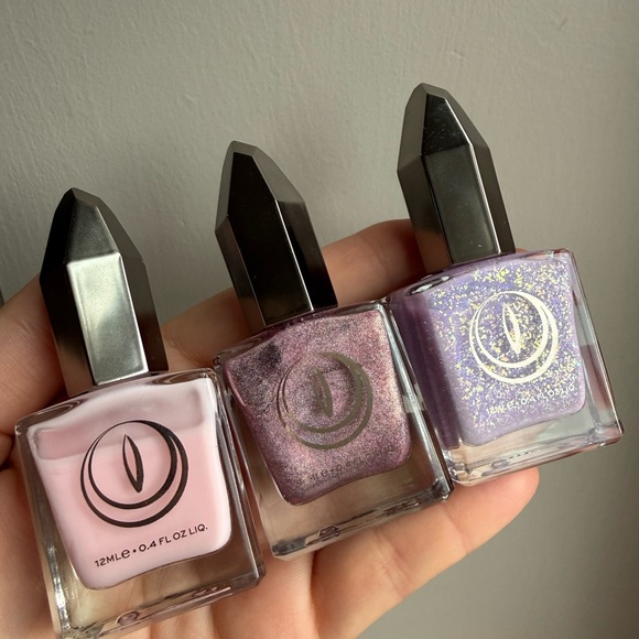 Set of two full sized luxury nail polishes and a light pink/nude base for smoothing out ridges and making the colors pop. 3 total. Gorgeous shimmery pink and purple shades. β¨Newβ¨