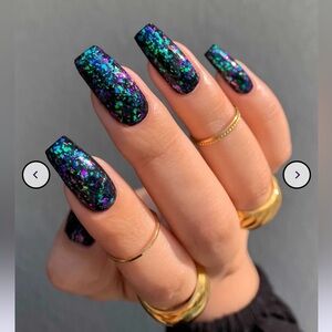 Mooncat polish topper - Foxfire. Color shifting glitter that goes over any color and looks great. Swatched.