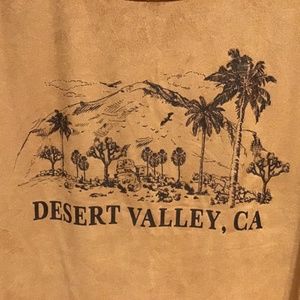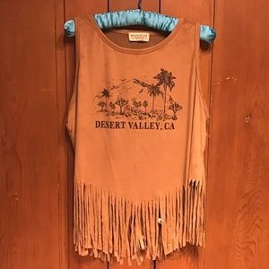 Fun tank with fringe bottom with Desert Valley, CA screen printed on. Size medium. 90% polyester 10% spandex. No flaws or blemishes. Soft fabric.