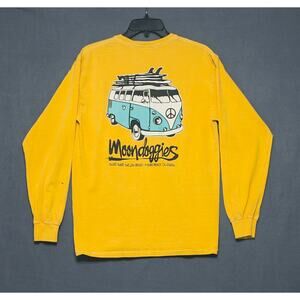 Stay coastal cool with this Moondoggies Beach Club long sleeve tee in sunny yellow. Features a retro VW surf van graphic for laid-back beach vibes. Unisex fit, 100% cotton comfort—perfect for surfcore, coastal grandkid, or skater-inspired style. Size M. There are flaws on this shirt. See photo's for details.