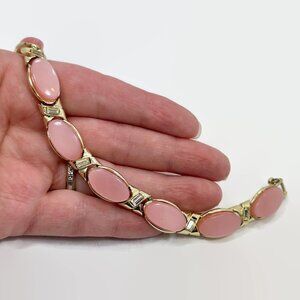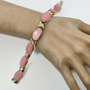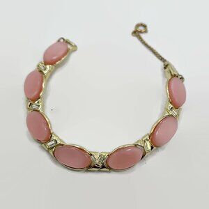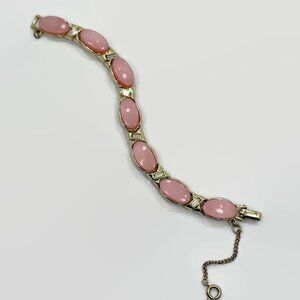 Moonglow Bracelet, Pink, Thermoset, Gold Tone, Vintage, 50s, Mid Century, Lucite