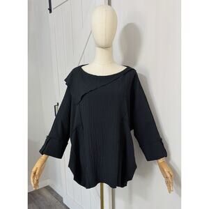 Moonlight Y & S Fashion Design Size M Black Tunic Top Crinkle Button Back Artsy