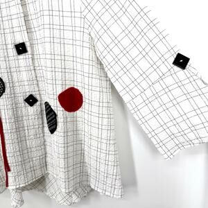 Elevate your wardrobe with this chic checkered blouse featuring bold red accents. Perfect for any occasion, this top combines style and comfort effortlessly.