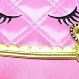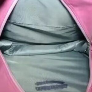This backpack has plenty of room for school books, notebooks and supplies. Made of nylon, adorned with sequin highlights. 2 main compartments on front. Face lifts up for 2 more pockets. Mesh pockets on each side for drink holding. 18 inches high, 15 inches wide. Padded straps, 3 inches wide. Hanging strap, and hand carry grip. There is a small spot on one shoulder strap as pictured. There is a name on one of inside compartments that was crossed out. This is on inside, not visible from outside. In research of this came with a matching lunch bag, but that is missing.