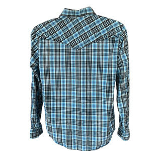 Moonshine Spirit Blue Plaid Western Slim Fit Shirt Pearl Snap Button Mens S