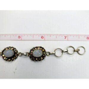 Moonstone Cabochon Bracelet T-bar Toggle Clasp Gold Silver Tone 6.5-7.5" LI103