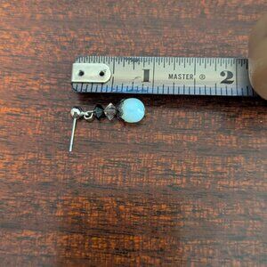 Iridescent Moonstone Blue Rainbow & Glass Beads Pierced Dangle Earrings. Great condition