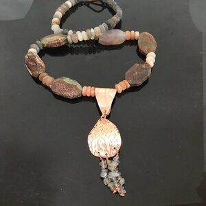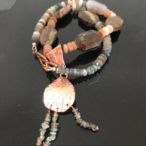 Moonstone Labradorite Boulder Chrysoprase Gemstone Copper Necklace Southwestern