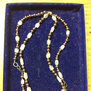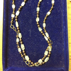 The double strand is a choker made with quartz and metal beads. Both have heavy duty magnet closures.