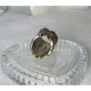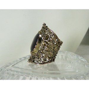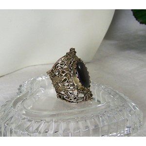 Moonstone Open Back Scalloped Bezel Set Long Knuckle Ring Filigree Brass Size 6