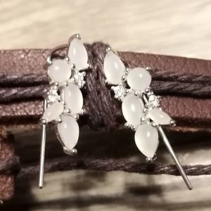 Moon stone clusters with cubic zirconia accents make these celestial ear climbers truly special.