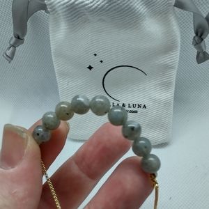 9 moonstone beads on a gold plated adjustable bracelet can be made tighter or looser.