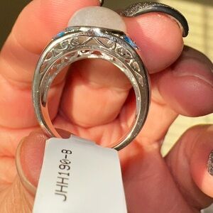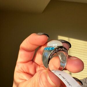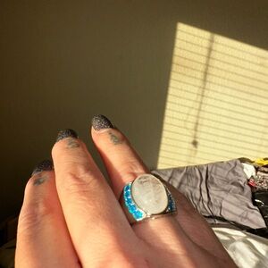Moonstone with lab blue topaz Silver and Blue Gemstone Ring size 8
