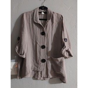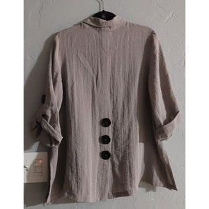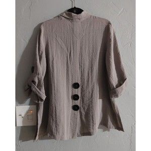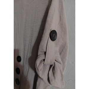 Mooonlight Tops Blouse Women Size L Made of a soft and comfortable rayon and nylon blend, this top features a stylish v-neckline and casual 3/4 sleeves. The solid gray color and button accents add a touch of sophistication, while the bohemian and classic style make it versatile enough for any occasion.