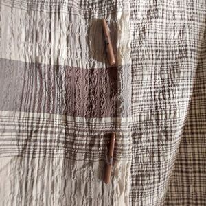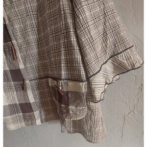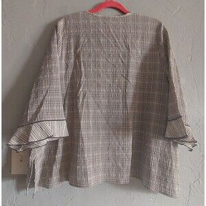Elevate your wardrobe with this stylish Mon-Line womens blouse in size L. Crafted from soft, lightweight polyester, it features a beautiful plaid pattern in shades of gray and brown that adds a touch of sophistication to any outfit.