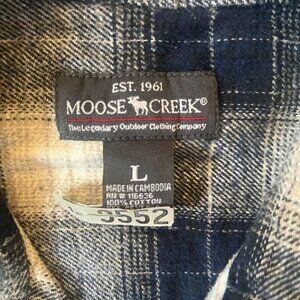 Moose Creek Men's Flannel Plaid Blue Gray Long Sleeve Button Up Shirt Size Large