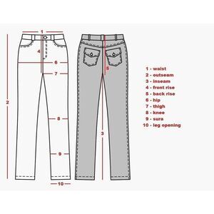 **Note: Please be aware- there may be a discrepancy between the size stated on the pants and the actual size as measured above. This may be due to manufacturer inconsistency and/or wear on the item, not a listing mistake.