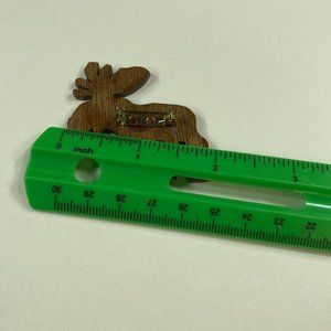 Moose Deer Vintage Wood Cutout Pin Brooch Animal Likeness. Has metal pin back glued on. Unbranded.