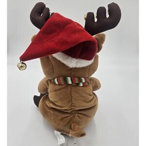 Get ready to spread some holiday cheer with this rare Gemmy animated moose plush! This adorable moose sings and dances to 'Holly Jolly Christmas,' complete with charming bell sounds. It's the perfect addition to your festive decorations and is sure to bring smiles to everyone.