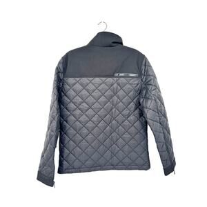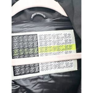Black Descendents quilted jacket from MOOSE KNUCKLES featuring quilted, funnel neck, drawstring hood, front two-way zip fastening, zip-fastening chest pocket, chest flap pocket, two side inset pockets, long sleeves and cuff zips.