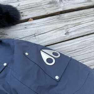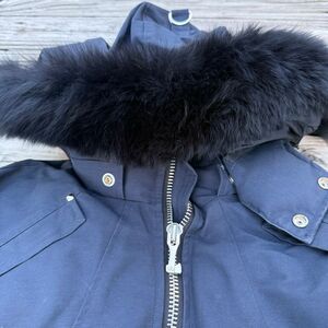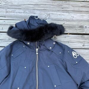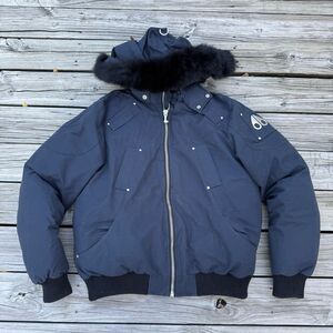 Moose Knuckles Men's Ballistic Bomber Jacket Coat W/ Fur Hood in gently used condition. Please view all photos for all light signs of wear. Size men’s large. Pit to pit 26 1/4”, total length 28 3/4”.