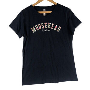 Moosehead Lake Maine T Shirt Medium Womens Navy Blue Raised Lettering Stitched