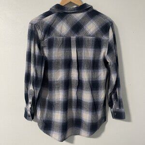 Moosejaw 100% Organic Cotton Plaid Flannel Button Up Shirt Blue Gray Navy L