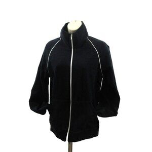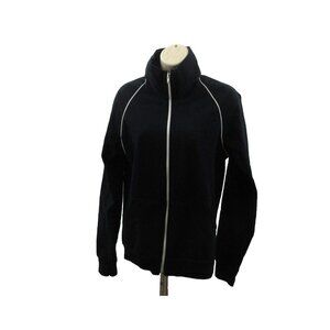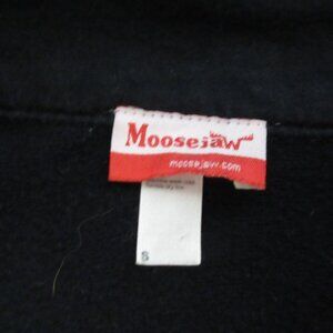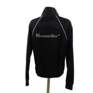 Moosejaw Athletic Jacket Womens Sz Small Black Full Zip Spellout Logo White Trim