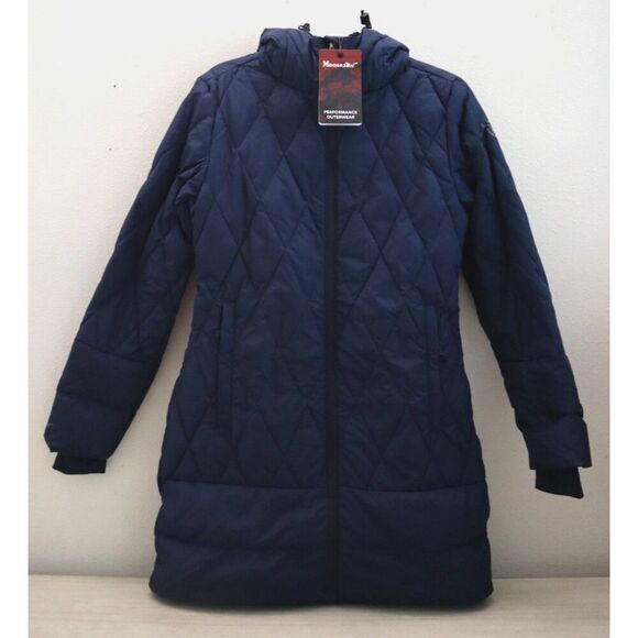 Moosejaw 7726255 Women's Sz S Blue Quilted Down Mid-Length Hooded Jacket