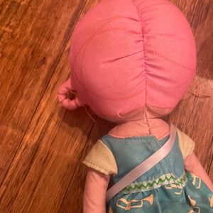 In good used condition. The main flaw is the threads around the hair on the sides is coming off.