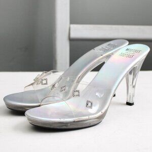 Mooties Tooties Y2K Rhinestone Clear Lucite Silver Utlra High Heels Size 8.5