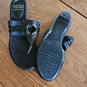 Mootsie Tootsie Black Sandals Women’s 7.5 | 1" Heel Slip-On Comfort Shoes