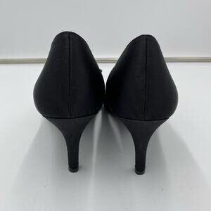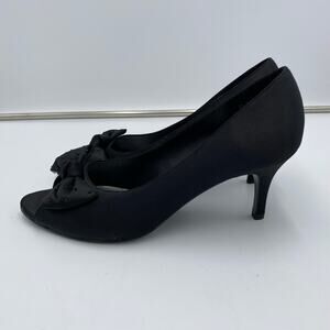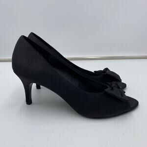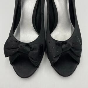 Mootsie + Tootsie Women's Black Satin Rhinestone Bow Peep Toes Heels Size 9
