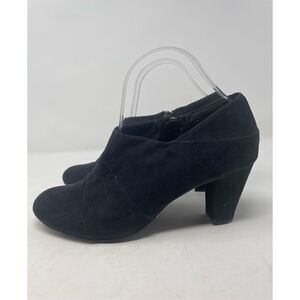 Black suede like Mootsie Tootsie heeled booties, Zips up the side, SIZE 9.5 minimal good condition signs of wear see photos for example. Very comfortable