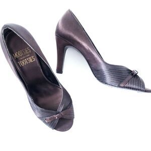 Mootsies Tootsie Brown Open Toe Heel Shoes Size 6 Satin Fabric Shoes