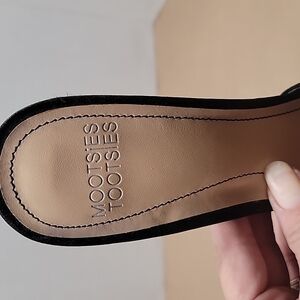 Size 7.5. Never Worn. NWOT. Adhesive residue on one insole, not visible when wearing.