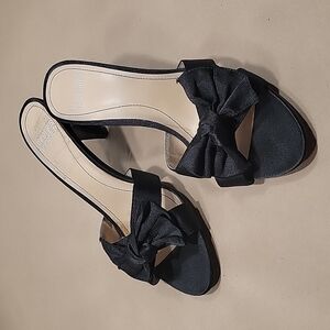 Mootsies Tootsies Black Sandals, Slides with heel and bows. Size 7.5. Elegant