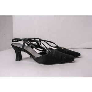 Mootsies Tootsies Collection Black Sling Back Heels Rhinestones Size 8W