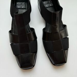 Mootsies Tootsies Fisherman Black Leather Strappy Slip On Size 9 Cut Out Grunge